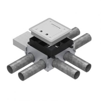 Tipo B: Para instalações em lajes onde a alimentação será feita pelo forro (por baixo da laje). Possui uma espera para canaletas Standard Dutotec (em cada lado).